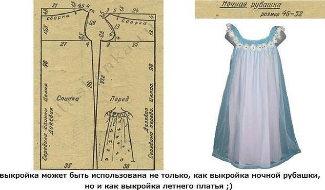 Выкройка ночной сорочки на бретельках
