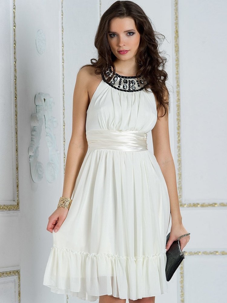 Популярный вариант коктейльного платья. Может быть как из плотной ткани узкого силуэта, так и сильно расклешенным, пышным, из шифона или другого подобного материала.