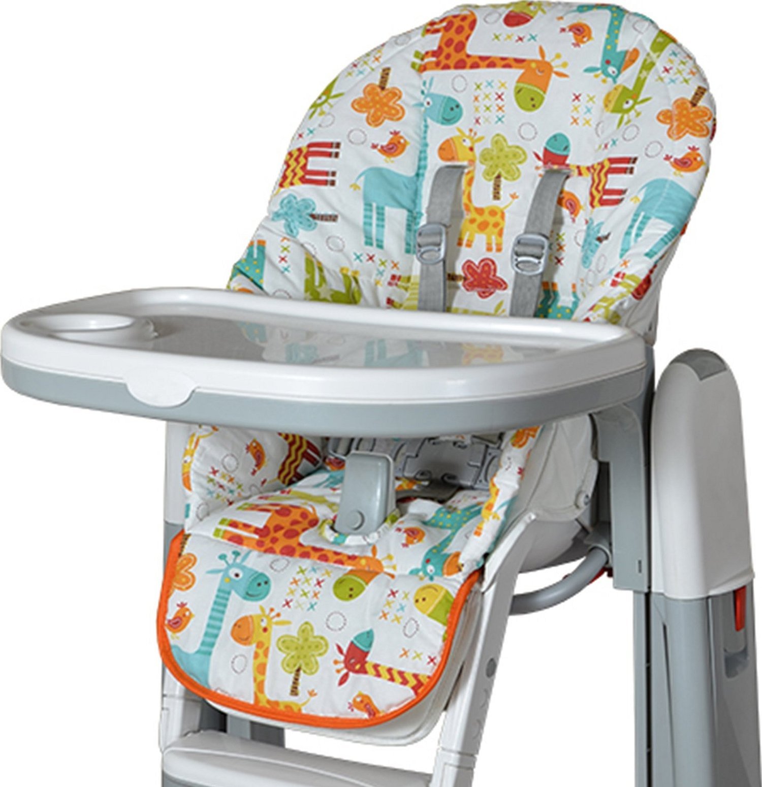 На стульчик для кормления лучше всего будет надевать водоотталкивающий чехол, который будет мыться без проблем. Так как у всей мебели конструкция своя, придется индивидуально проводить все мерки по стулу или по стандартному чехлу.