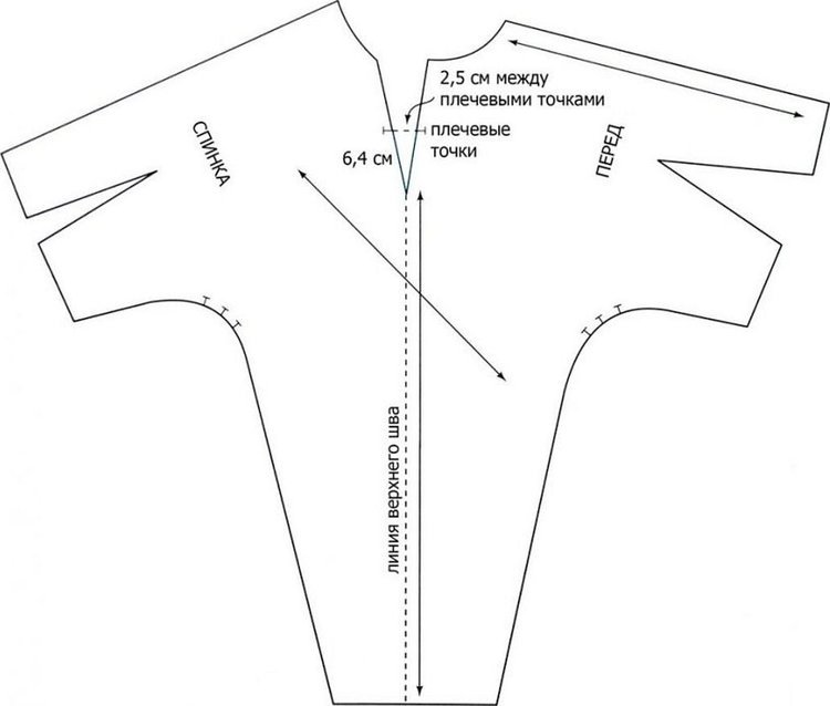 - Ниже рукава продолжить шов, который соединит спину с передней частью.