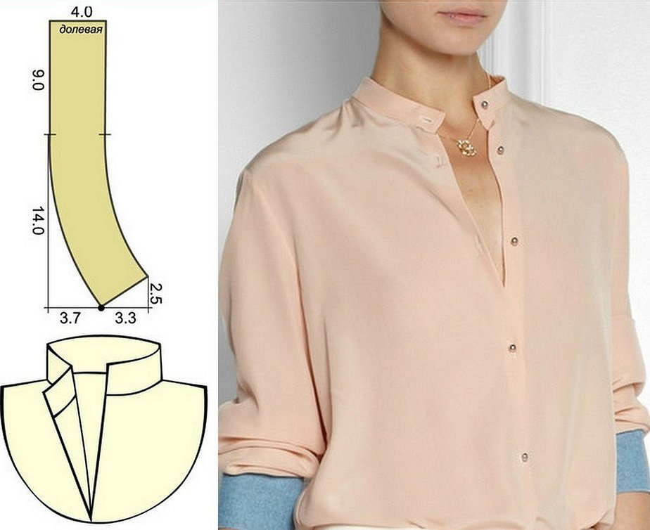 Выкройки, пошив и пришивание воротника стойки к рубашке