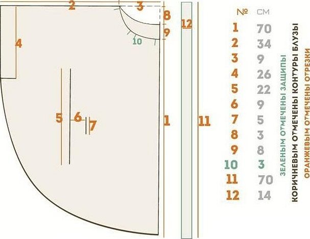 Выкройка блузки с цельнокроеным рукавом