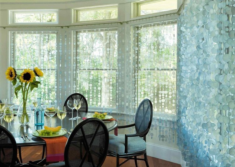 Разнообразьте окно с бусинами. Создать мечтательную атмосферу, которая расслабляет и гармонизирует, можно с этим бисерным занавесом как альтернатива шторам. Занавески из бусин подойдут, если неприкосновенность частной жизни не требуется. Все-таки, как самостоятельное средство, они не смогут защитить окно. Материал можно выбирать в зависимости от бюджета и особенностей интерьера: от обычного стекла и пластика до природных камней, ракушек и прочего.