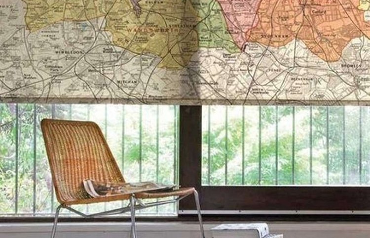 Карта. Идеально подходит для кабинета путешественника, комнаты отдыха или студии. Бумага достаточно хрупкая, чтобы использоваться как занавеска, поэтому холст подойдет как никогда. Еще вариант альтернативы шторам — перенести рисунок на пленку для окон, из пункта выше.