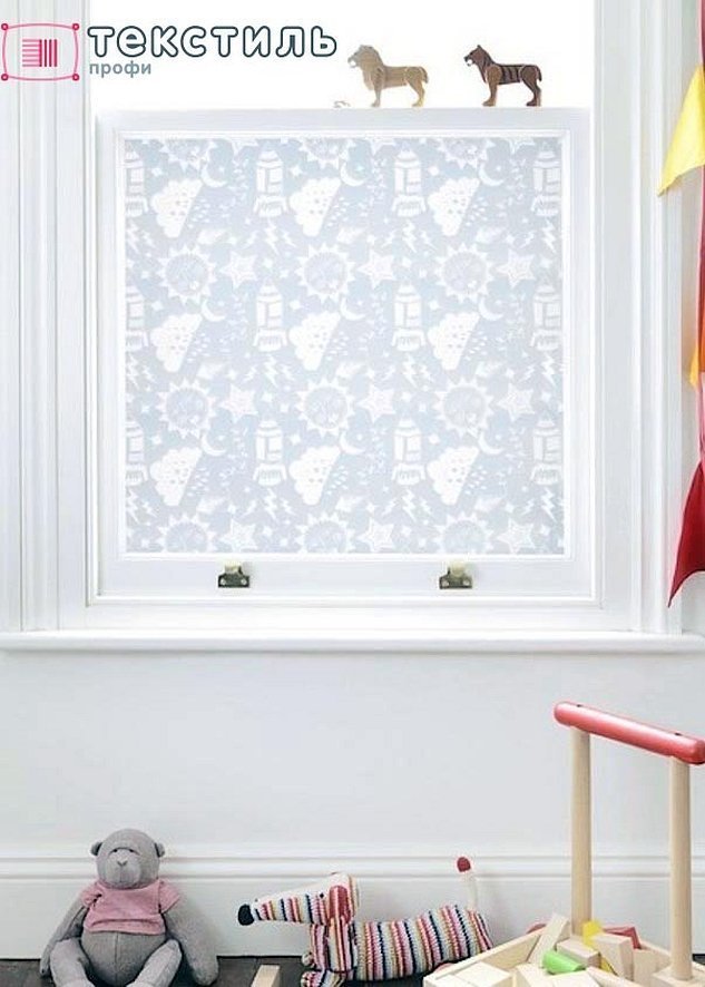 Наклейки на окна вместо занавесок. Пленка немного напоминает декаль, этот вариант доступен в различных цветовых и дизайнерских решениях. Он легко устанавливается, при необходимости удаляется водой. Подходит для детских комнат. Рисунок на интерьерной пленке и покрытие возможно сделать на заказ в районе 500 рублей за рулон.