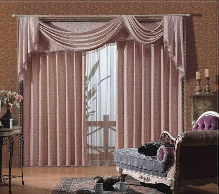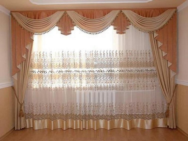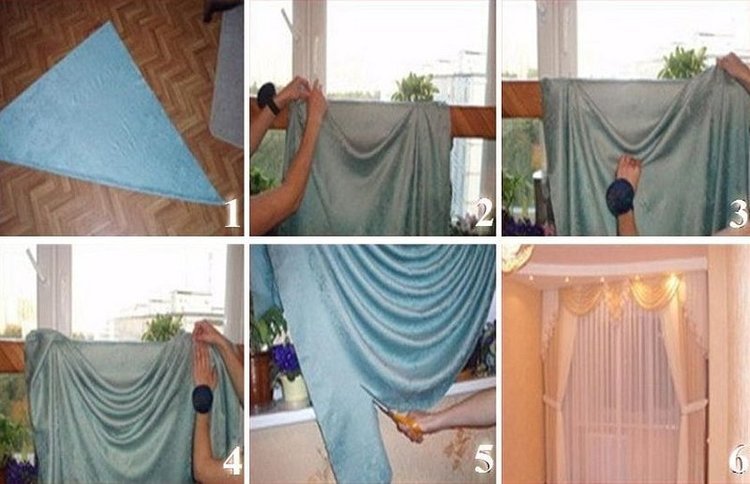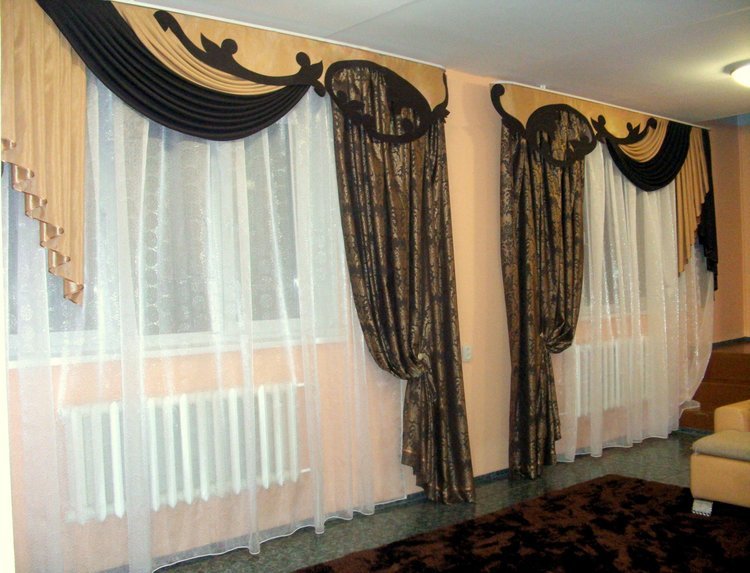 Теперь самое время отмерить точную высоту штор и подшить низ. Наши ламбрекены для зала своими руками готовы.