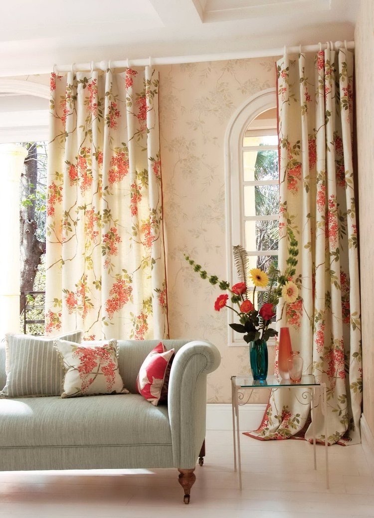 Орнамент на текстиле должен быть не броским, а скорее, легким и элегантным. Например, очень уместны флористические мотивы.