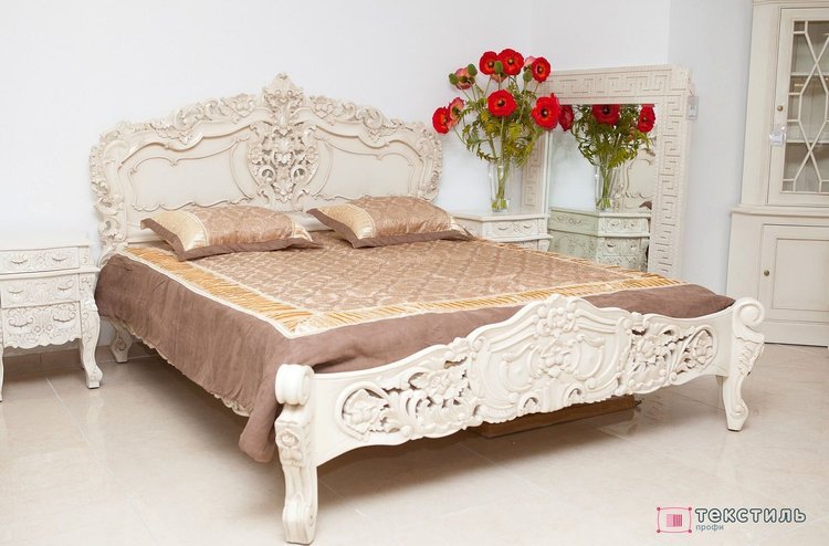 Кровать в стиле барокко с резным изголовьем
