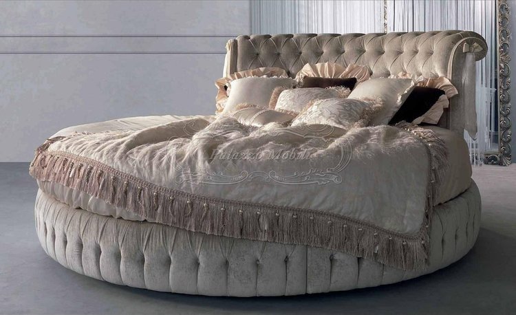 Круглая кровать с высоким изголовьем