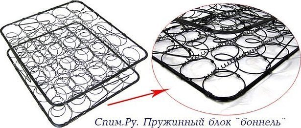 Вспомнили? Да, это основа того самого старого советского матраса. Старая, надежная и неплохая технология. Говорят, что 80% россиян спят на «боннели». Если говорить об ортопедических свойствах «боннели» - то они не самые лучшие по сравнению с независимыми пружинами. Но вполне подойдет как неплохой экономичный вариант для дачи, или в случае, если вы меняете «раритетный» экземпляр матраса 70-х - 80-х годов, тогда сон на «боннели» от Вегас будет для вас райским отдыхом. Ну и для всех, кто пока что не может себе позволить независимые пружины.