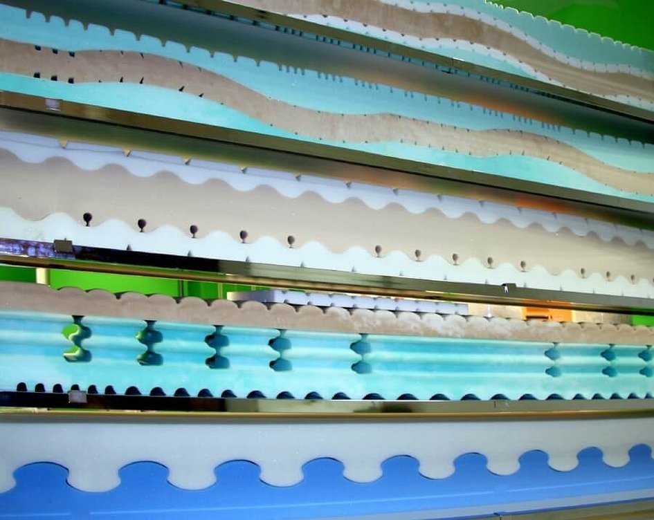 В беспружинных матрасах на основе искусственных пеноматериалов способы получения зон в различных матрасах и у разных производителей самые разнообразные. Это может быть: