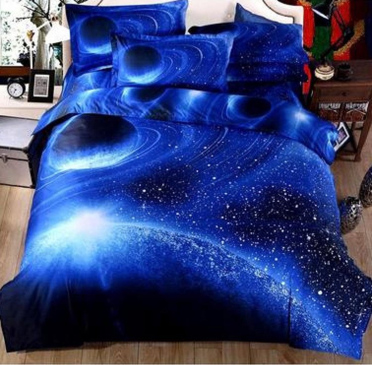 Также в последнее время очень быстро набирает популярность постельное белье космос 3D.