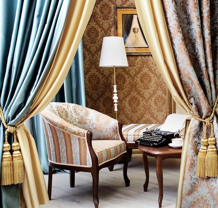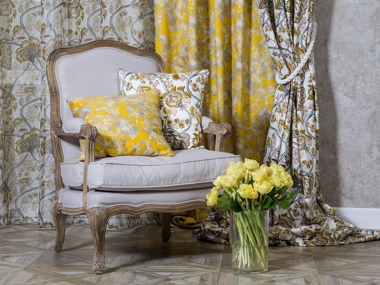 Большой фактурный узор на изделии выглядит, как настоящая картина. Отлично проработанный стиль подчеркивает все окно. Линии узора похожи на филигранную резьбу прошлого века. Плотная ткань хорошо держит форму штор. В составе этого материала присутствует хлопок. Благодаря этому коллекция очень эластичная и мягкая. Для завершения стиля можно добавить несколько небольших статуэток из камня.