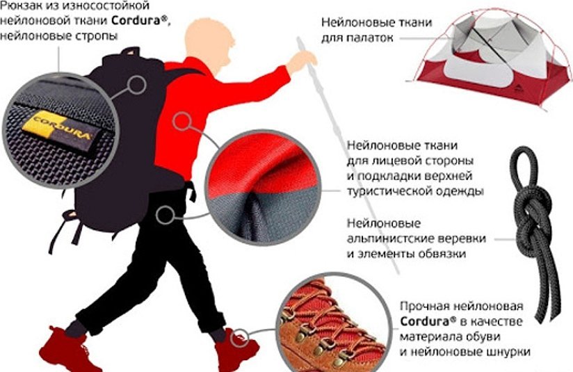 Полиамид – универсальный пластик, которого достаточно для производства посуды, одежды, туристического оборудования.