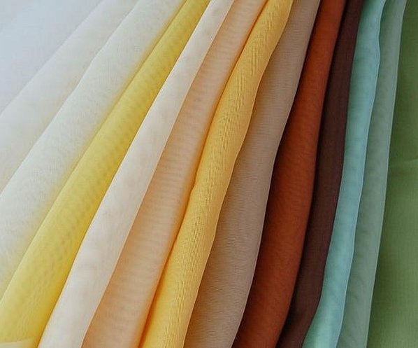 По легенде, первую сетку-тюль изготовили французские мастера для невесты короля. Материал изготавливают из синтетических нитей (лайкра и полиэстер), а также из вискозы. Сетка – это воздушная, легкая, но в то же время жесткая ткань. Для подкладки следует выбирать мягкие вариации с добавлением натуральных волокон. К этому виду материала причисляют также гипюр, тюль и фатин.