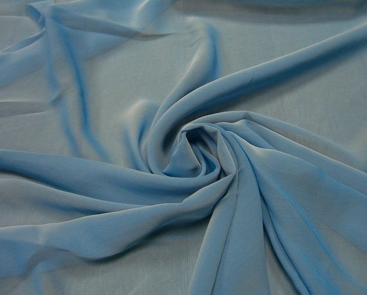 Воздушная, летящая, полупрозрачная ткань – это шифон. Материал изобрели в Китае и делали его из чистого шелка. В первой половине ХХ века шифон стали изготавливать из полимерных волокон нейлона, а затем из полиэстера. Существует несколько разновидностей ткани: перламутровый шифон, хамелеон, с люрексом и напылением, креповый и жаккардовый.