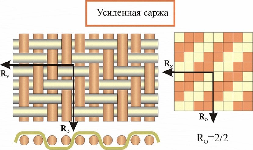 К производным этих видов относятся модифицированные и усиленные ткани. К примеру, в усиленном сатине из 8 нитей каждого ряда утка также есть 2 основы и 6 утков. В итоге, ткань получается намного прочнее.