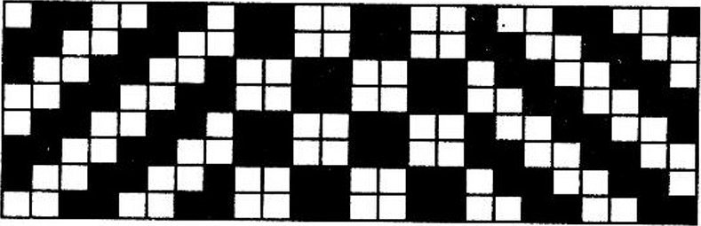 Обратная. Ткань саржевого переплетения схожа с ломаной, но при этом в рисунке имеется сдвиг. От этого форма диагоналей получается более необычной.