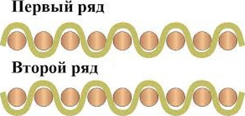 При перемещении к каждому следующему рапорту, происходит сдвиг на 1 нитку.