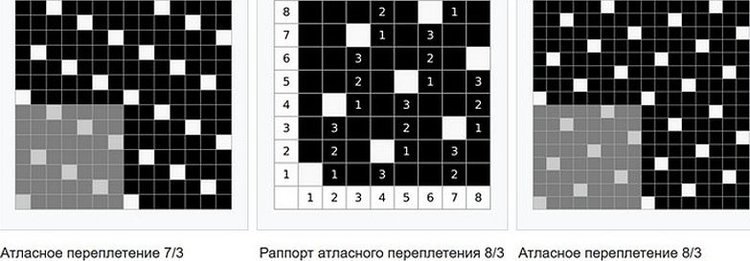 Атласное переплетение. Противоположность сатину – на наружной стороне расположены основные нити.