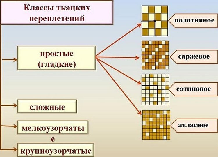Разновидности переплетений текстильных полотен: схемы и описания