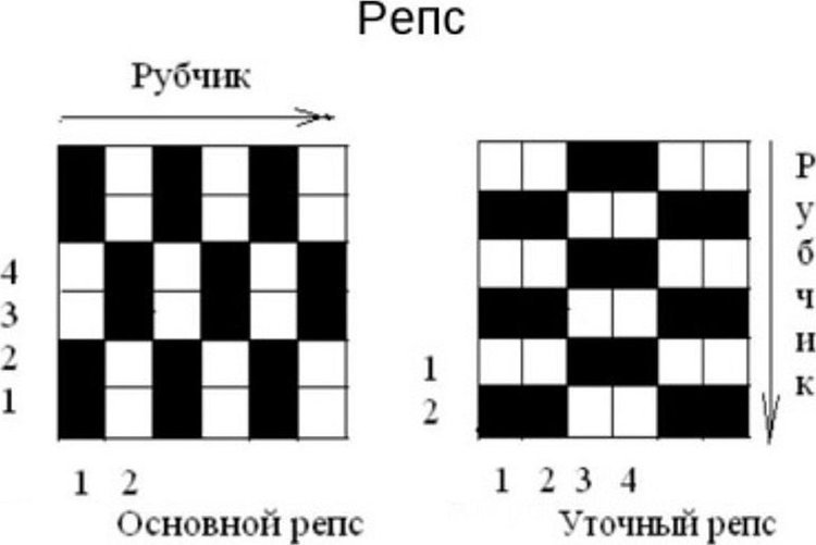 Это видоизмененное полотняное плетение. Их легко отличить по характерному рубчику, который образовывается на поверхности. Существует в 2 видах: