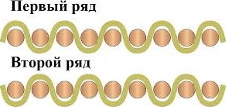 В результате образуется характерный диагональный рубчик. Он может меняться, в зависимости от плотности. Повышенная кучность делает рубец более крутым и выраженным. При ее уменьшении, он становится менее заметным.