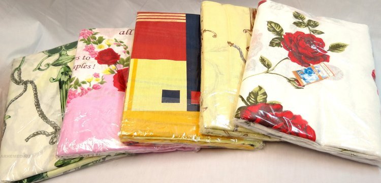 - Набивная. Самая привлекательная из всех видов бязи. По всему полотну расположен цветной рисунок. Из такой материи шьют постельное белье, детскую и взрослую одежду, делают скатерти и салфетки.