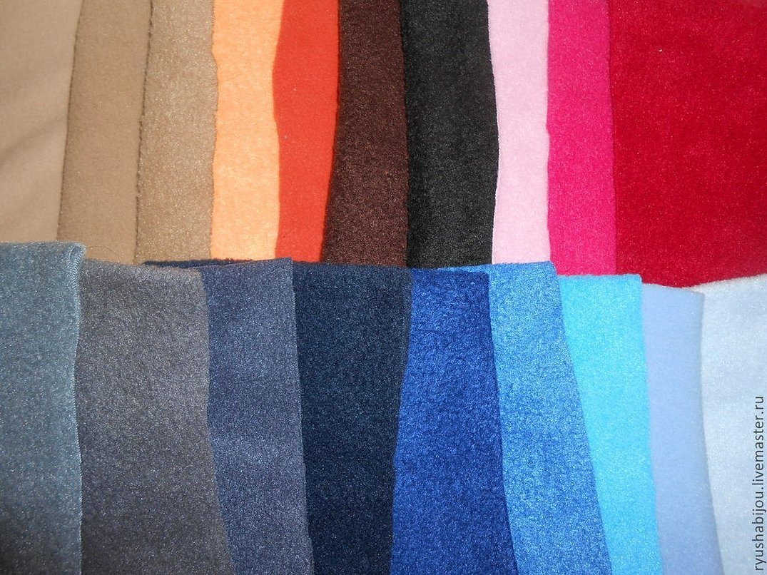 Эта ткань является синтетической. В ее составе содержится полиэстер и другие искусственные волокна. На вид она представляет собой нетканый материал — ворсистый и мягкий на ощупь.