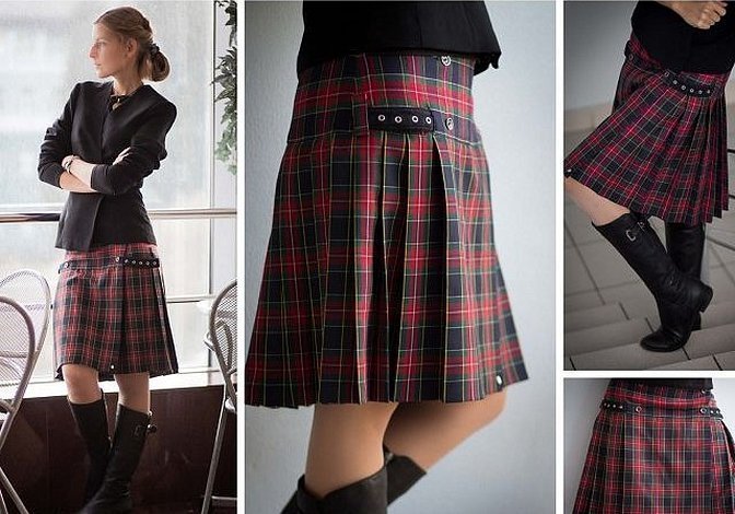 Юбки-шотландки доминируют в любом ансамбле, поэтому остальные вещи к ней подбираются очень аккуратно.