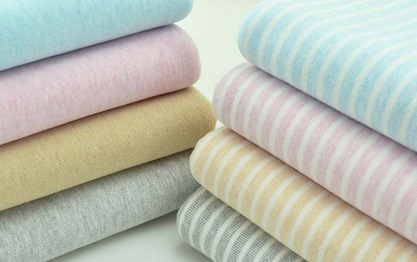 И последний вариант плетения – это гладь. Лицевая часть гладкая на ощупь, состоит из продольных полос. Тянется такая ткань только в ширину, за счет чего вещь долго не теряет свою форму. Обычно из глади производят халаты, белье и летнюю одежду. Основными компонентами в составе являются хлопок и лайкра. Чтобы повысить эластические свойства материала, в него добавляют смесь синтетических волокон.