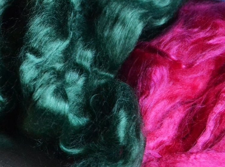 - Вискозное штапельное волокно — короткие волокна добавляют ткани большей эластичности. Поэтому этот материал красиво драпируется, не крошится так сильно. Покрасить его можно не только в монохромный цвет, но и нанести на поверхность рисунок.