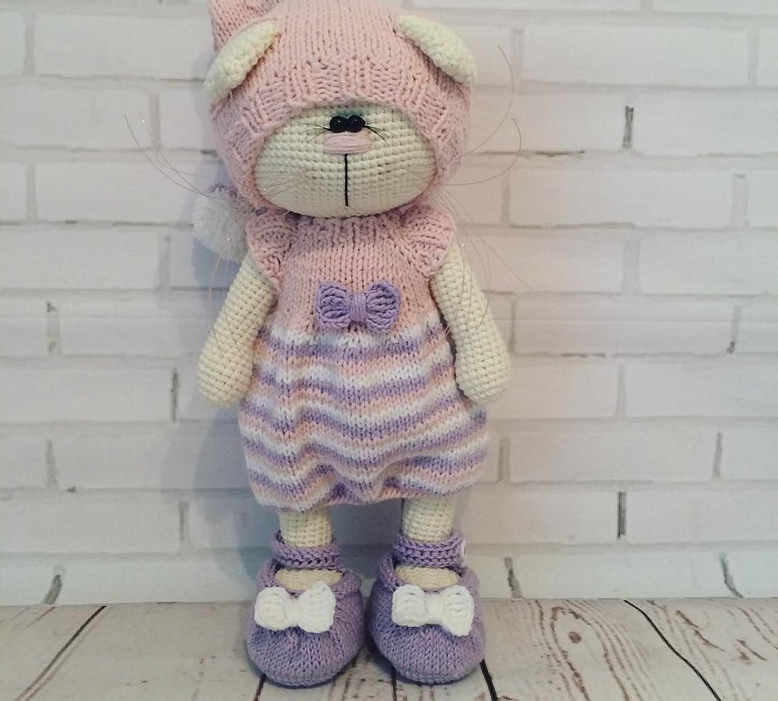Существует немало универсальных базовых выкроек, при помощи которых создается вязаная кошка в стиле Тильда. Используя подробный МК, даже начинающая вязальщица сможет справиться с изготовлением милой куклы.