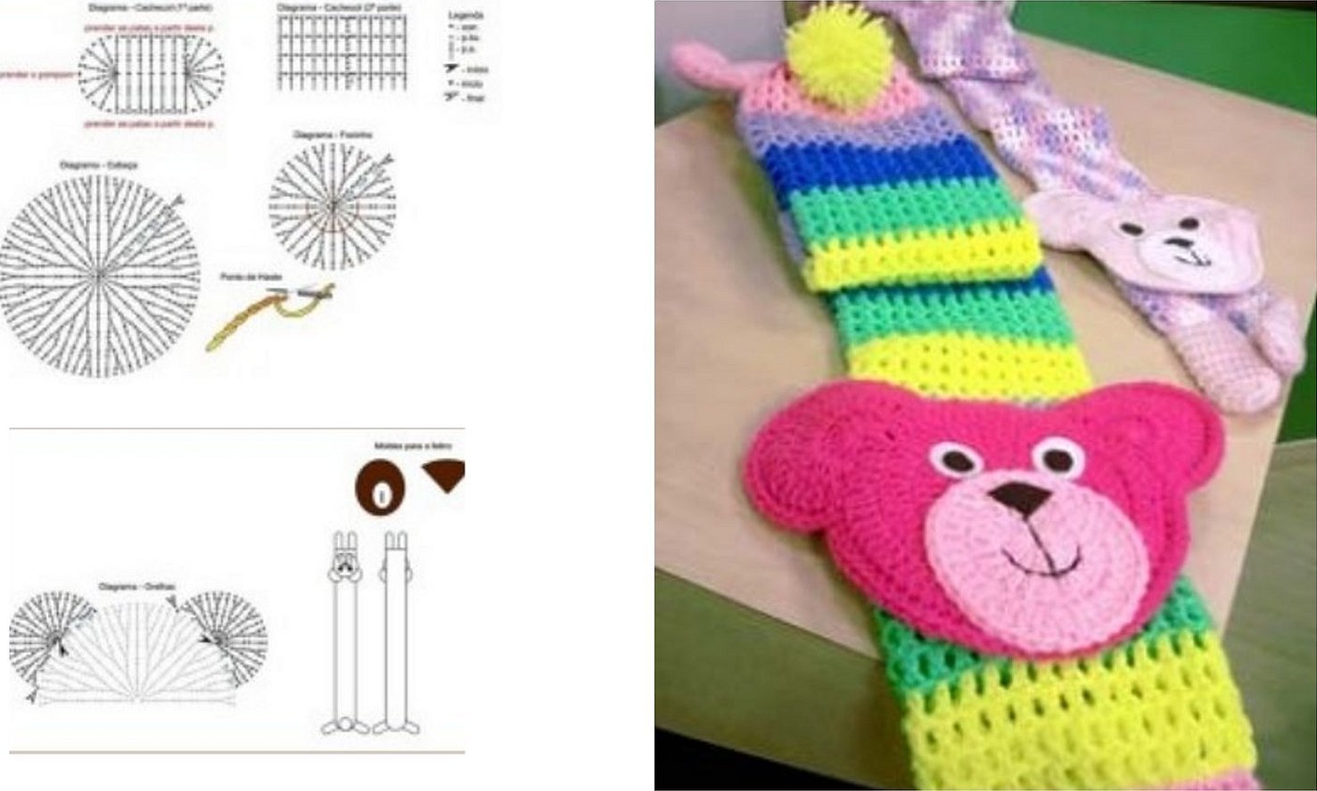 Есть масса вариантов, как связать мишку-обнимашку. В данной концепции лучше изготовить детский шарф с мордочкой мишки.